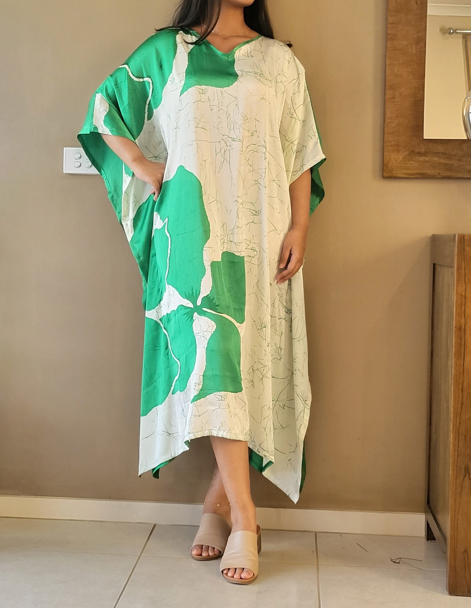 Printed Batik satin Silk long Kaftan is a stylish 3-quarter length